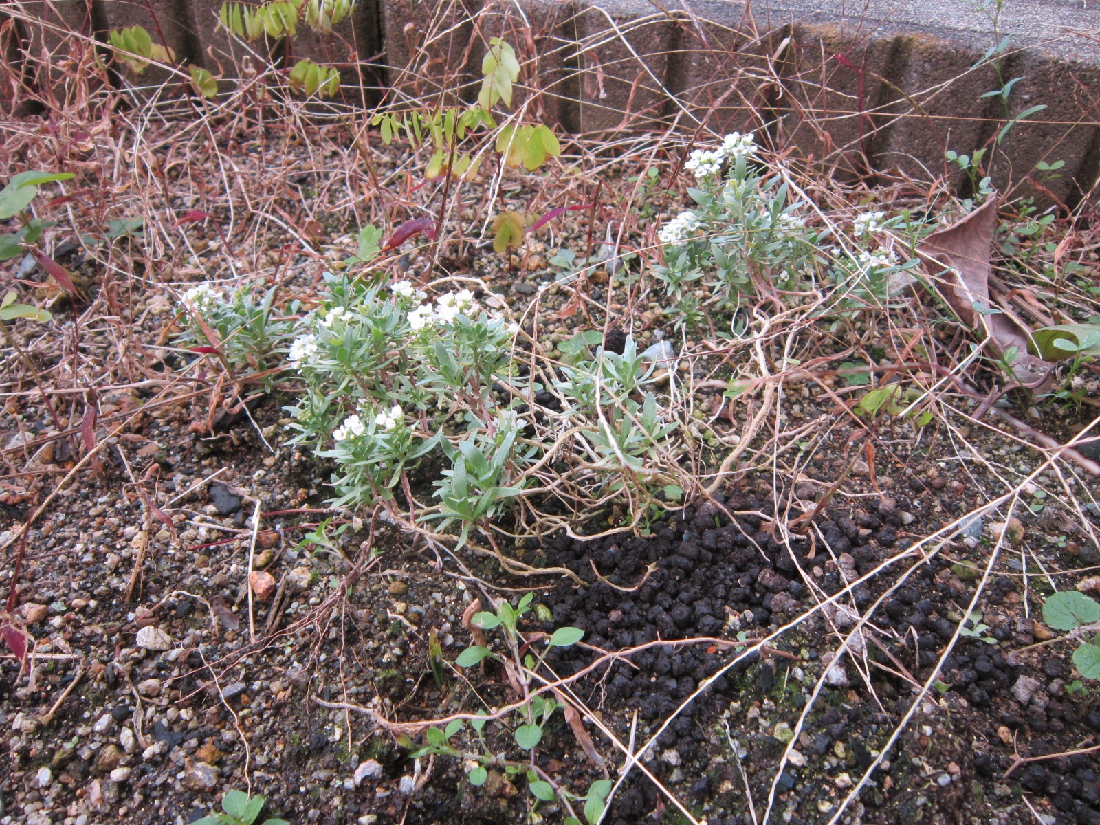 雑草に埋もれたところ救出したところ、間違って一部のアリッサムを引きちぎりました。申し訳ない・・・