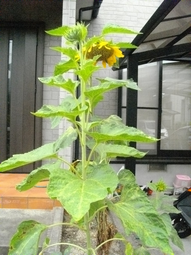 先行して咲いたヒマワリはそろそろ終わりのようです。ヒマワリ畑の方が咲き始めました。