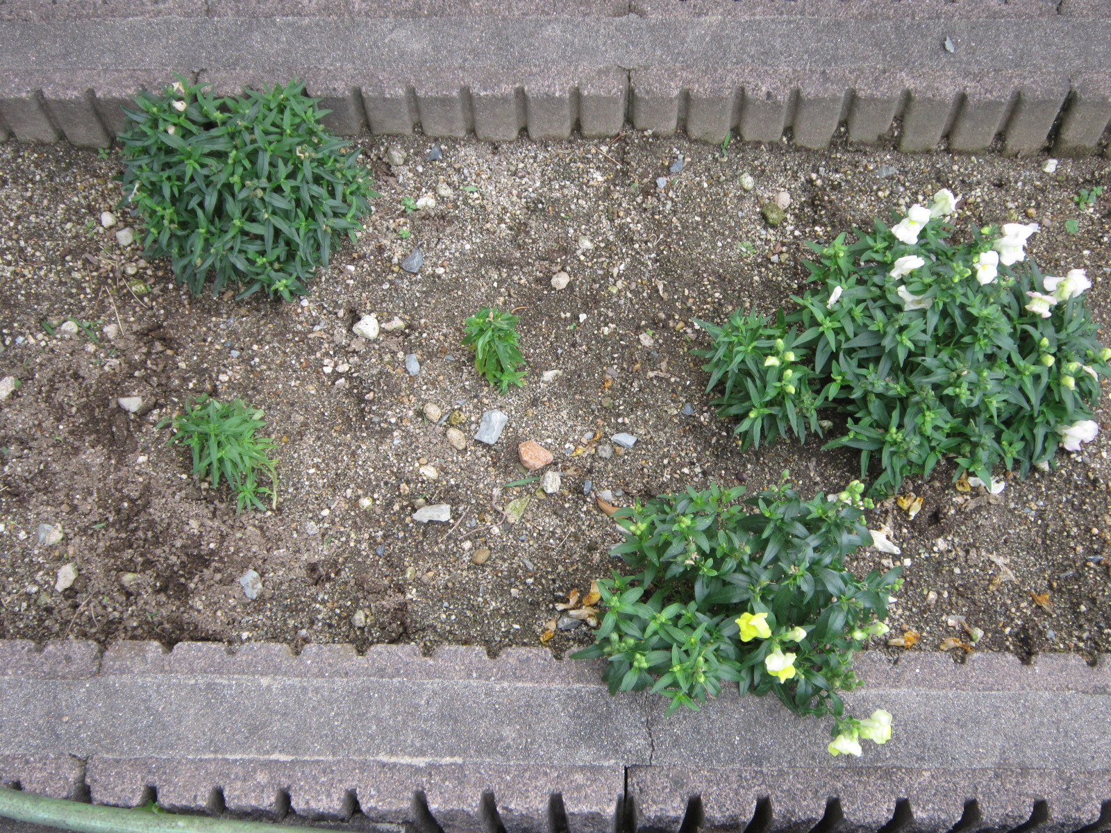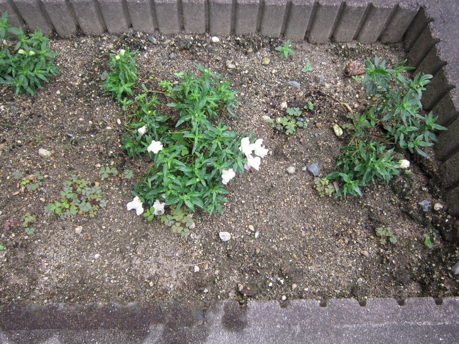 またもやこぼれた種からいくつかの芽が出てきました。これまでのキンギョソウは、枯れてしまうとそれで終わりだったのですが、今回は恐ろしいほどの生命力です。