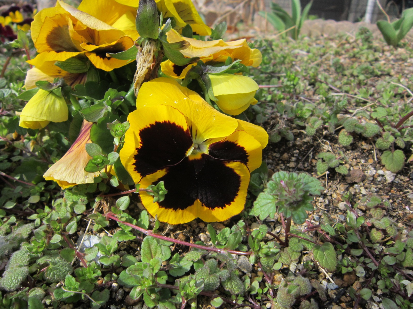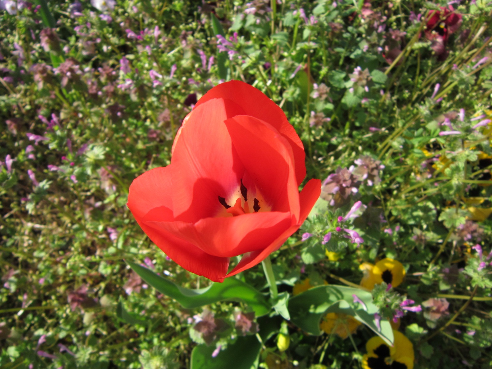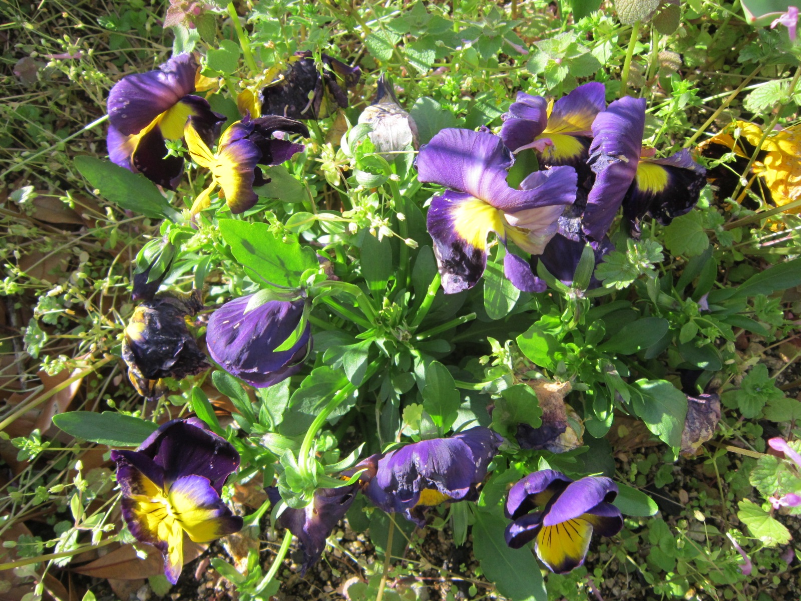 昨年のチューリップ後始末したとき、球根まで取れなかったものもあったので、そのままにしたら春になって芽が出て咲きました。いやはやビックリ。来年も咲くかどうか試してみようと思います。すっかり仏草に埋もれてパンジーが見えません。引っこ抜きたかったのですが、そこまでの気力はありませんでした。来週になったら抜こうかなぁ?