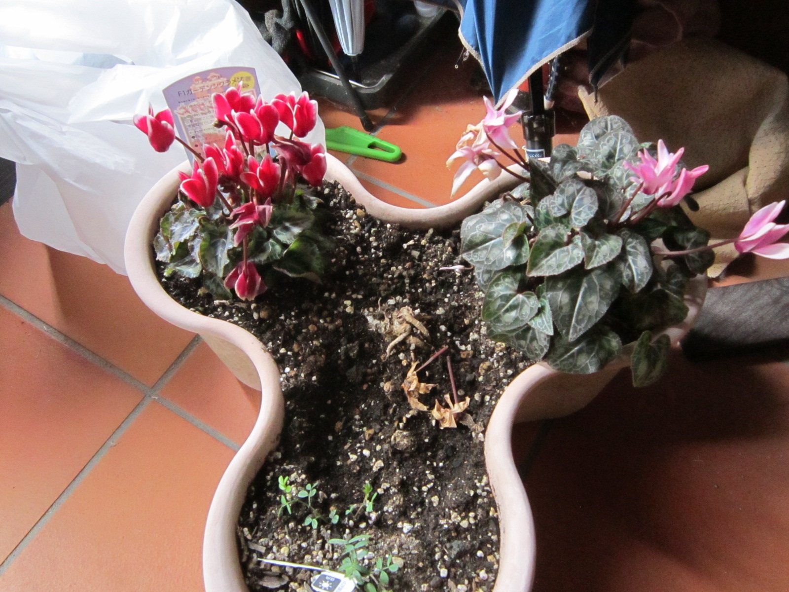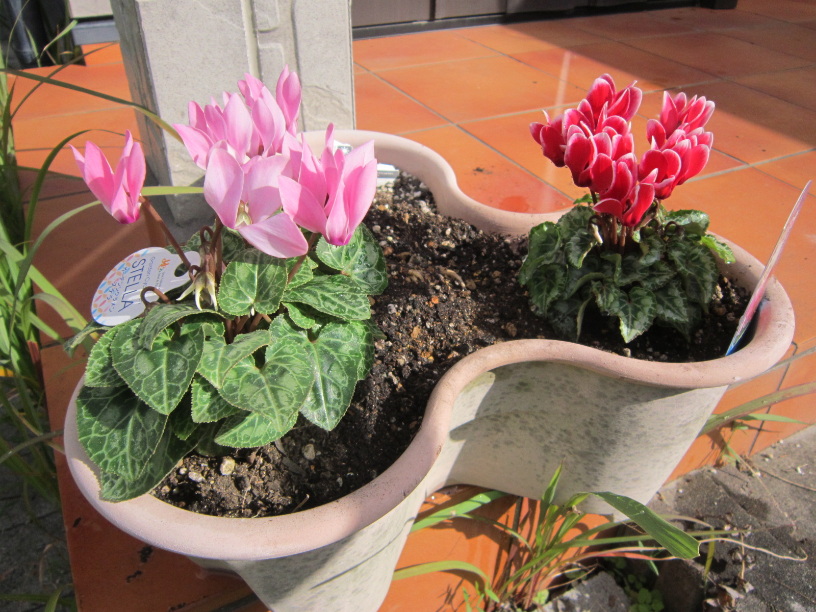 ガーデンシクラメンを2品種育てることにしました。私には似合わないピンクとちょっと先が白っぽい赤です。