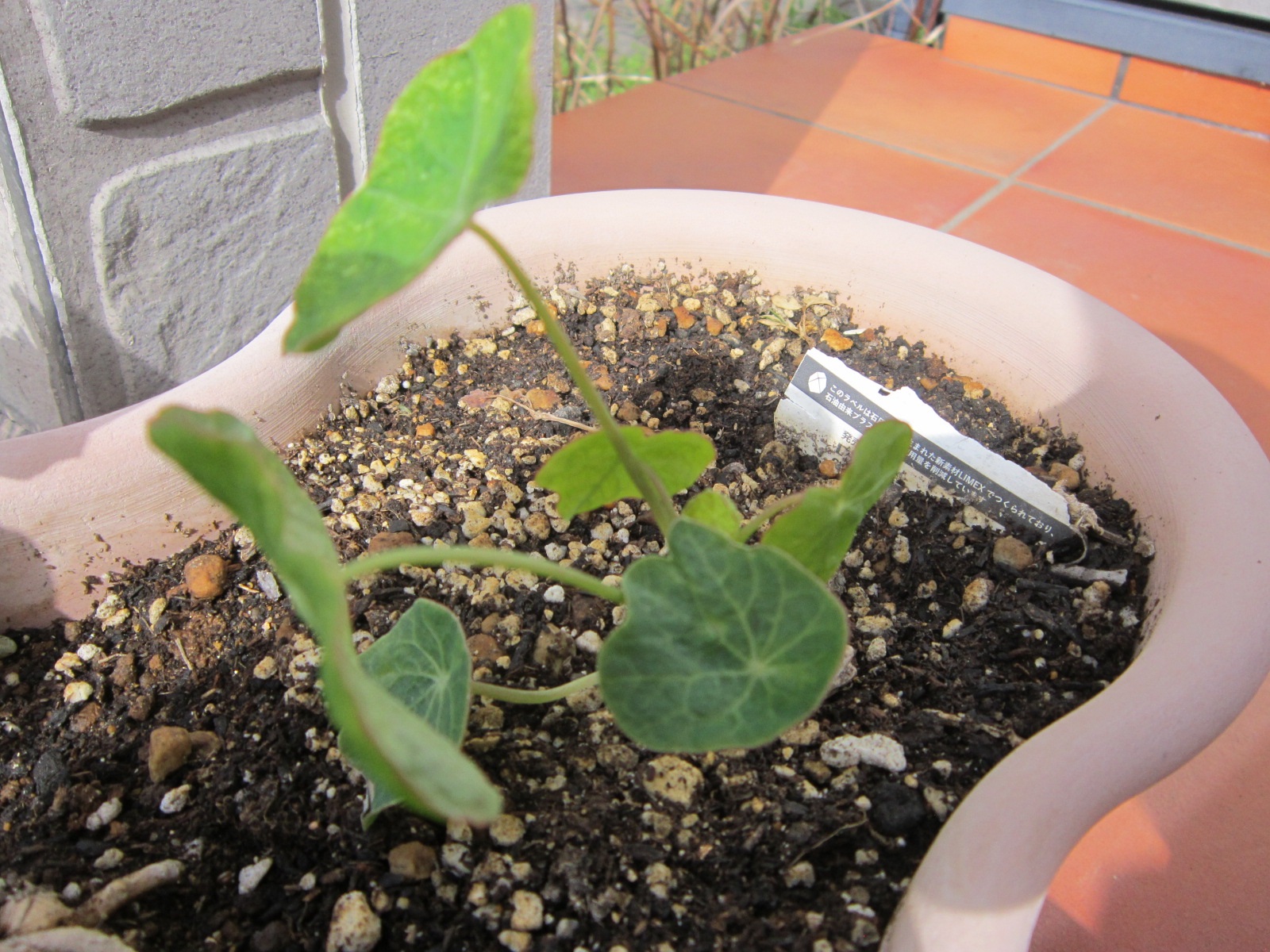 手前のシクラメンが枯れてしまいました。ズボラにした結果です。その代わり、キンレンカの種を友人から戴き芽が出てきました。ここから何処まで成長するかな?